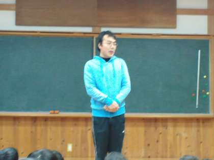 保健朝会のあと、給食主任から、給食の食器の片づけ方について話がありました。
