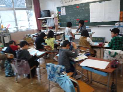 先週の木曜日の授業の様子です。書き初め展に向けて授業が行われていたり、お正月遊びに取り組んでいたりしていました。