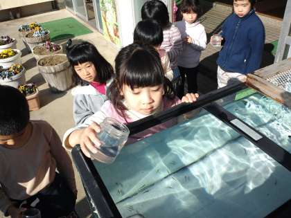 始業式の日に、冷蔵庫の中で飼っていたヤマメの稚魚を大きな水槽に移しました。その時の様子です。前回の続きです。