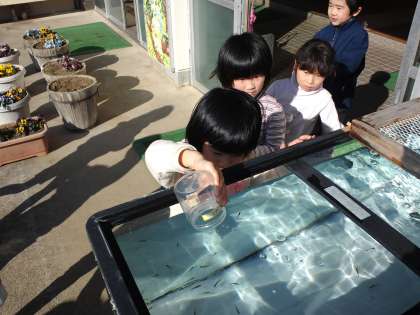 始業式の日に、冷蔵庫の中で飼っていたヤマメの稚魚を大きな水槽に移しました。その時の様子です。前回の続きです。