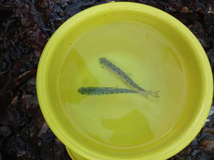大きく育ったヤマメを川に放流2