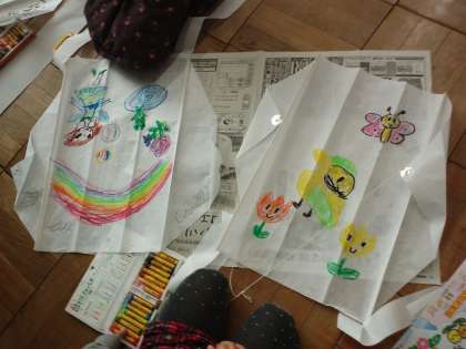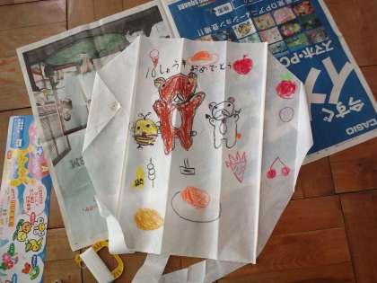 今週、八王子市内の保育園の先生と園児1名が本校の1年生と交流しました。初めに、凧揚げの凧作り、そしてそのあと、凧揚げをしました。1年生の子供たちは園児にやさしく語りかけたりしてほほえましかったです。