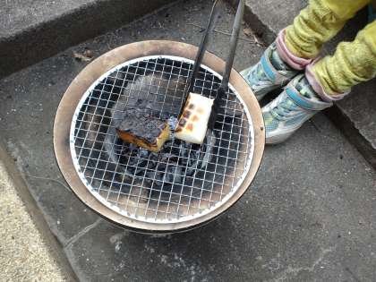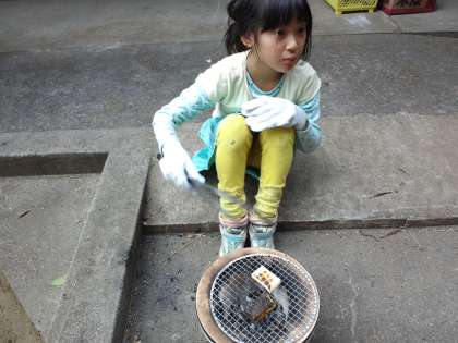 3年生の社会の学習で「古くから残る暮らしにかかわる道具、それらを使っていた頃の暮らしの様子」について学習しています。その中で、3ン先生はスライドの映写機を見たり、洗濯板を実際に使用して靴下を洗濯してみたりしていました。今回は、七輪の使い方を体験を通して学習しました。その時の様子です。なかなか炭がおきなくて苦労してました。