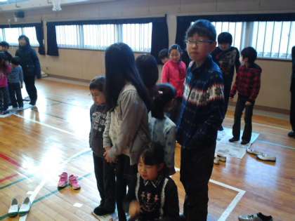 先週の児童集会はゲーム集会でした。広げた新聞紙の上に縦割り班ごとに立ちます。集会委員会の人とじゃんけんをして負けると新聞紙をたたみます。その上にまた縦割り班のメンバーでたちます。じゃんけんで負けると新聞紙の大きさがどんどん小さくなってしまうので、どうしたら小さな新聞紙の上に立てばいいかも班で作戦をたてないといけません。しかし、その前にじゃんけんに勝ち続ければ、新聞紙をたたまず、広げたままでいらるのでじゃんけんの強いチームが一番強いですね。