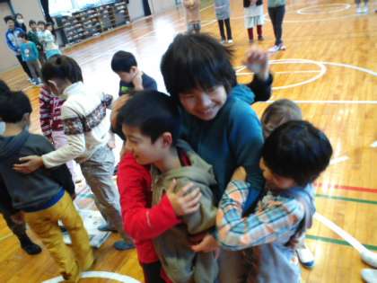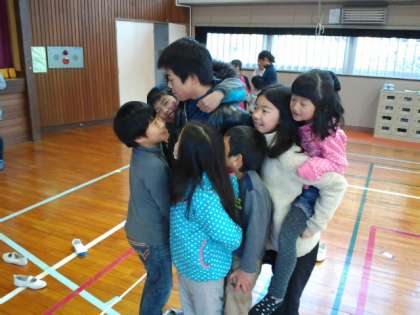 先週の児童集会はゲーム集会でした。広げた新聞紙の上に縦割り班ごとに立ちます。集会委員会の人とじゃんけんをして負けると新聞紙をたたみます。その上にまた縦割り班のメンバーでたちます。じゃんけんで負けると新聞紙の大きさがどんどん小さくなってしまうので、どうしたら小さな新聞紙の上に立てばいいかも班で作戦をたてないといけません。しかし、その前にじゃんけんに勝ち続ければ、新聞紙をたたまず、広げたままでいらるのでじゃんけんの強いチームが一番強いですね。