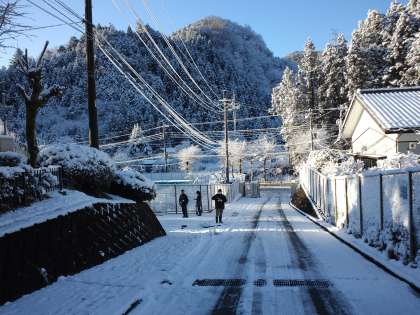 今朝の学校敷地内の様子です。雪景色でとてもきれいでした。