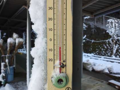 今朝、ウサギ小屋の前の温度計は−8度でした。朝、温度計の写真を撮る時間が少し遅かったので少し温度が上がってきてから写真をとりました。