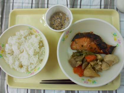 給食の時間中、1・2年生に納豆は好き?と聞くと、