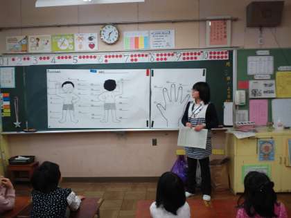 先日、1年生で性教育の授業を行いました。「体の部位の名前を覚える」ことと「保健室に来室した時の記録の仕方」を学習しました。