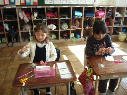 先日、2年生の国語の授業を参観してきました。国語の説明文で「きつつき」を読み、1用意するものを読み取ったら材料を用意し、2 作り方を読み取ったらそこまで作ってみるというやり方で「きつつき」のおもちゃ作りに挑戦していました。しっかり読み取らないとおもちゃも完成しません。みんな一生懸命に取り組んでいました。「先生見て!みて!」と言いながら、みんな夢中でした。