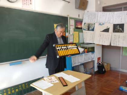 先週の水曜日に3、4年生がそろばんを勉強しました。ゲストティーチャーに平川先生にお呼びして、そろばん教室を行いました。