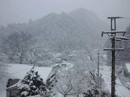 土曜日に大雪が降り、やっと雪かきで学校内の道路や駐車場が使えるようになったと思ったら、またこの雪。子供たちは給食後下校しました。バスも関場13時31分の定時で出発しました。今、午後3時30分ですが、ますます雪の降り方が激しくなってきました。