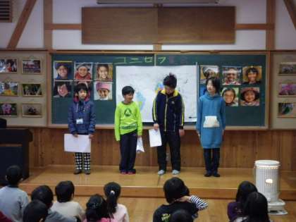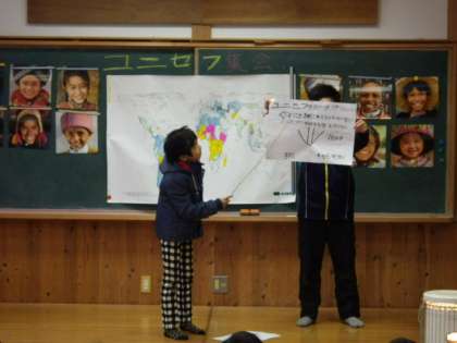 昨日の児童集会はユニセフ集会でした。児童会の本部役員の子供たちが、ユニセフ募金のためにユニセフの紹介などをしました。