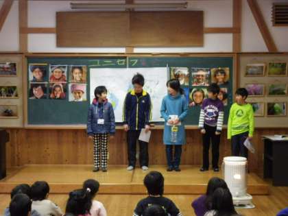 昨日の児童集会はユニセフ集会でした。児童会の本部役員の子供たちが、ユニセフ募金のためにユニセフの紹介などをしました。