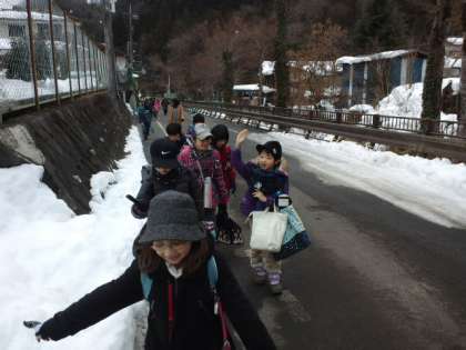 先週の土曜日の午後から、一週間ぶりに陣馬高原下行きのバスが運行して、昨日から普通通りの登下校に近い形になってきました。ただまだ学校周辺は雪が多く、歩道の雪かきがされていないところや道幅が狭いところもまだあり、地元の子どもたちは歩いて来るのが危険なところもありますので車での送迎が必要なところがあります。早く暖かくなり、雪溶けて欲しいですね。