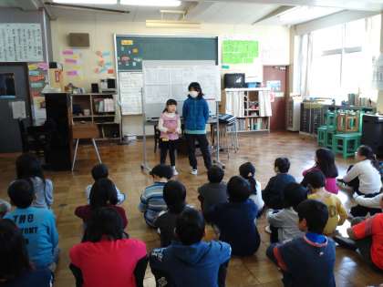 今日の保健朝会では、養護教諭より、初めに「3学期の保健目標について」「1年間の健康の振り返り」について話がありました。1年間の健康の振り返りの中で子供たちが一番できていないのが「毎日うんちをする」という項目です。そこで、養護教諭から「毎日ウンチをすることが健康に良いこと、毎日ウンチをする習慣をつけるにはどうしたらよいか」の話がありました。