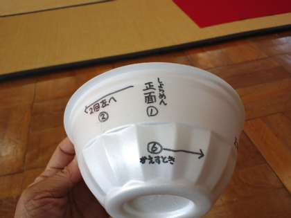 先日、一年生と六年生が恒例の茶道教室を行いました。ゲストティーチャーは、もと恩二小の先生です。いつもは視聴覚室でおこなっているのですが、雪の影響で、家庭科室でおこないました。