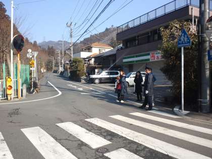 今日の登校風景と周辺風景です。ずいぶん春らしくなりました。花粉症の方にはつらい季節になりました。