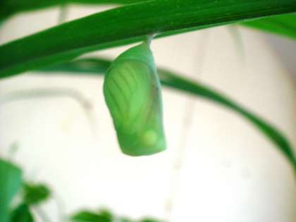 3年生の、クロコノマチョウの幼虫がサナギになっていました。