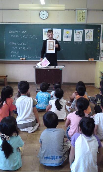 今日は一学期最後のALTのヒントンさんによる外国語活動がありました。