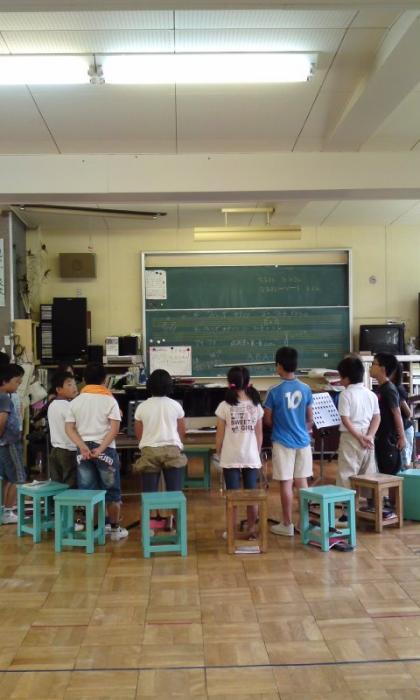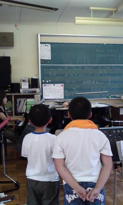 4年生が、聖者の行進を英語で歌い、リコーダーの練習をしていました。