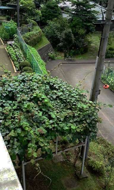 アシタバの新芽が出て来ていました。キウイーフルーツが大きくなっています。