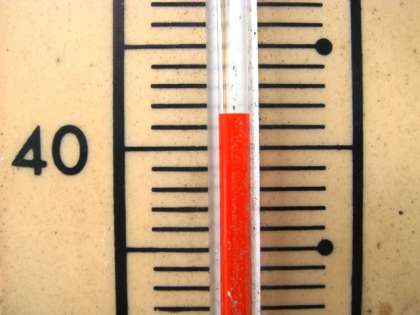 「やぎ小屋」の前の気温は…。(直射日光が当たっていました。)