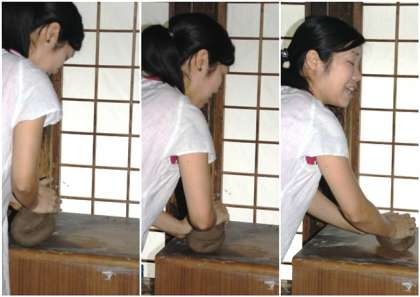 最初は粘土をこねることから始めました。菊の花びらのようにねる「菊ねり」は、3年もかかると言うくらい難しい作業でした。中田さんはいとも簡単にねっていました。