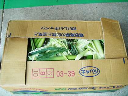 今日は午前中に「やぎのエサやり」のために恩二小に行きました。まずは、途中で「エコス・たいらや」さんに寄り、野菜をいただきました。