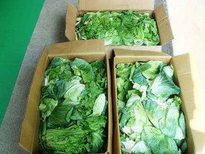 涼しい作業場の中に5箱のエサがありました。最後の2箱は従業員の方が車まで運んで下さいました。