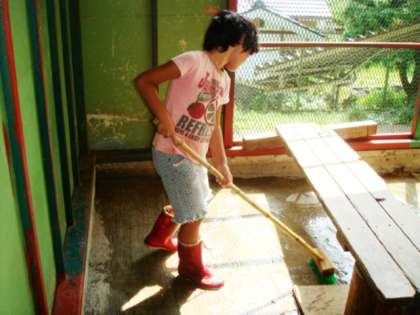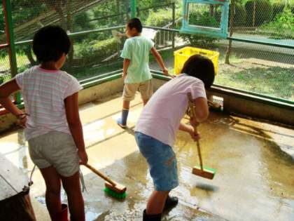 あっという間に、やぎ小屋の掃きそうじと、水洗いをしてくれました。2〜3年生がいつも大変な小屋掃除をやってくれます。