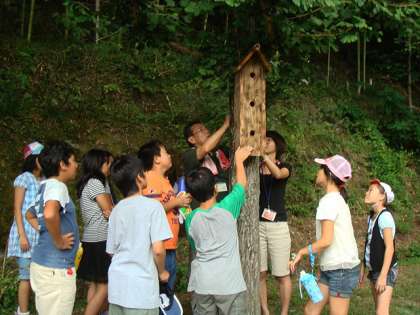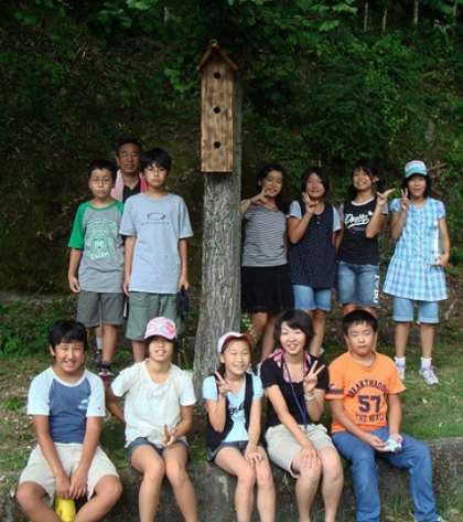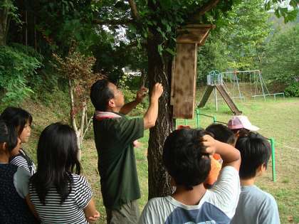 6年生が、夏休みの作品展に作ってきた工作の「巣箱」を校庭の木に設置しました。小鳥が巣を作るかどうか楽しみです。