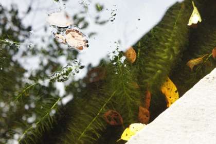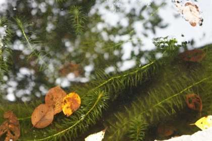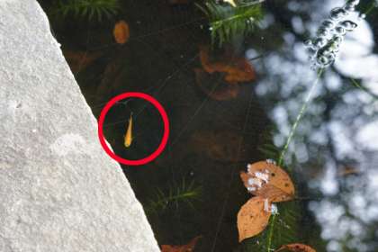 視聴覚室の前の池の「メダカ」が、元気で泳いでいました。雨樋から雨水が入るようにしてあります。防水ペンキを何回も塗って防水しました。