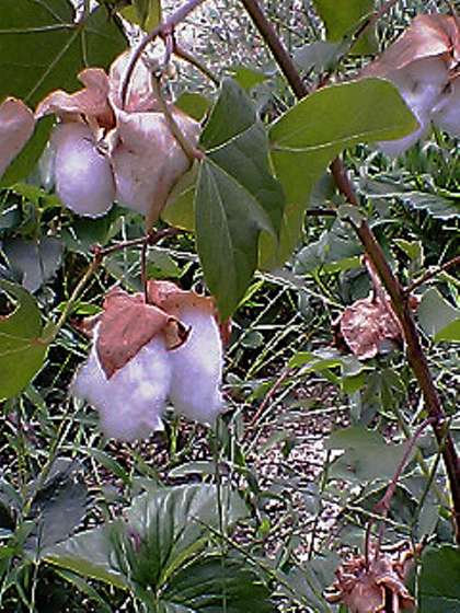 綿花の種がはじけて「綿」が種の中から出て来ていました。