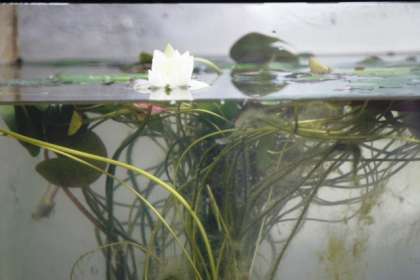 今日の午前中、馬場Eさんの家から「メダカ」をいただきました。クロメダカ・ヒメダカ、合わせて百匹ぐらいです。児童昇降口の水槽に入れました。スイレンも数株いただきました。