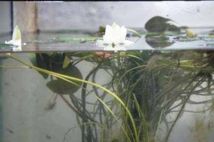 今日の午前中、馬場Eさんの家から「メダカ」をいただきました。クロメダカ・ヒメダカ、合わせて百匹ぐらいです。児童昇降口の水槽に入れました。スイレンも数株いただきました。
