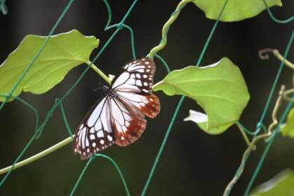 1日の昼頃から校舎の裏の「キジョラン(鬼女欄)」にアサギマダラがやって来ました。どうやら、産卵をしているようでした。