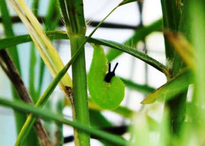 クロコノマチョウの幼虫が「サナギ」になりそうでした。明日にでもサナギになると思われます。