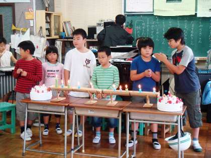 7日(木)の朝会は、10月生まれの人たちの「お誕生日集会」でした。今日のインタビューは、好きな楽器を聞いていました。