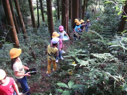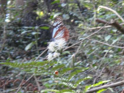 10月7日(木)5校時 2年生が作品展の作品作りのために、材料を集めに学校の裏山に行きました。きれいな花、めずらしい形の葉、かわいい木の実。たくさん拾うことができ、「ラッキー、こんなに拾えた!」という言葉もきかれました。さらにラッキーなことがありました。偶然、アサギマダラが花の蜜を吸っている姿も見ることができました。