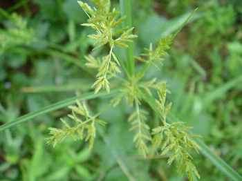 ☆植物の茎には、丸いものや四角いものなどがありますが、カヤツリグサ科はほとんどが三角形です。写真をよくみると、細長い葉が3つの方向に伸びているのがわかるでしょう。