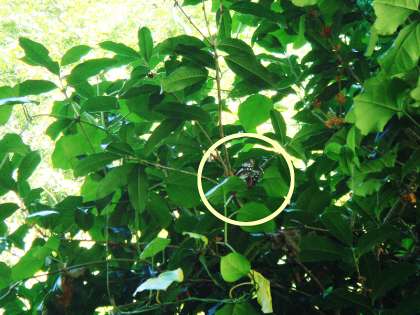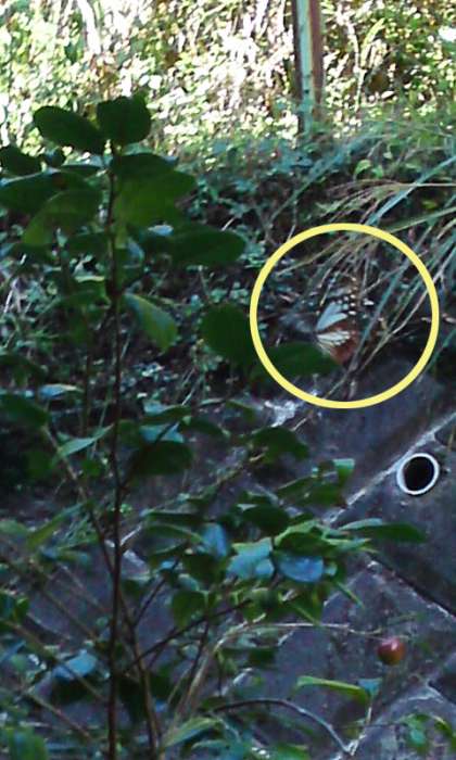 昼過ぎに恩二小の校舎の裏のキジョランに「アサギマダラ」が来ていました。あまりにも低いところに止まったので、ネットで捕獲し、マーキングをしました。