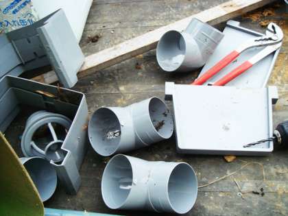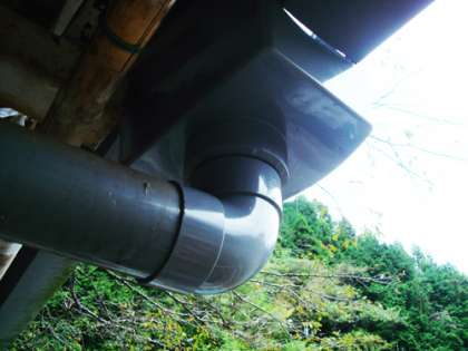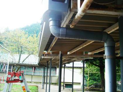 用務主事さんが雨どいの修理を開始しました。一人で修理するのは大変だったと思います。