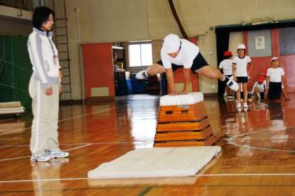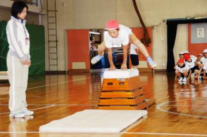 今日の3校時に、3・4年生の「体育の授業」がありました。跳び箱の練習をしていました。