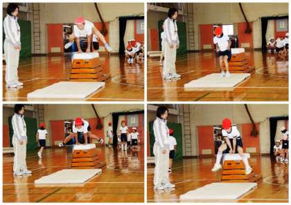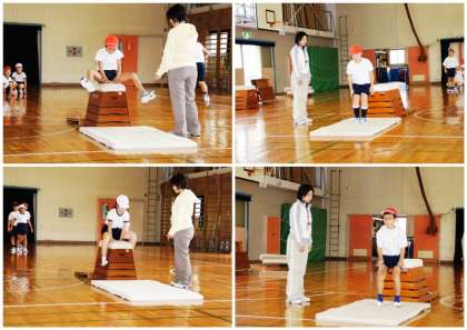 今日の3校時に、3、4年生の「体育の授業」がありました。跳び箱の練習をしていました。