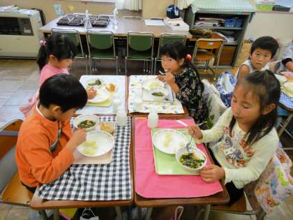 1年生が給食よく食べていました。