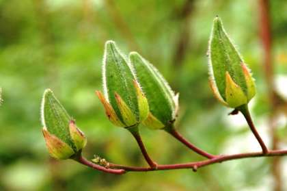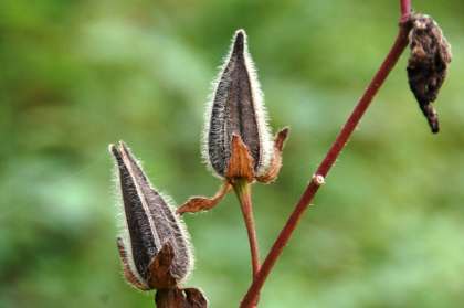 体育館や校舎のまわりの「トロロアオイ」の種ができてきました。種が重要なのではなく、紙漉(和紙作り)のためには、根から出る粘液が必要です。