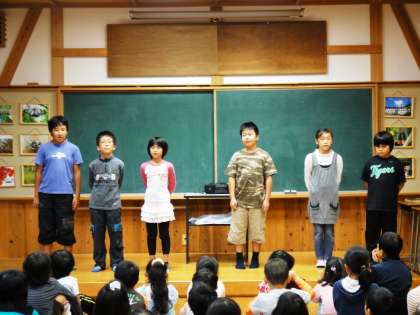 今日は、放送委員会の子ども達が「○×ゲーム」をやってくれました。