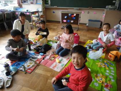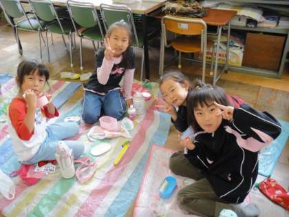 22日(金)の陣馬山への全校遠足が雨のために延期になりました。でも、子ども達は4校時が終わると教室に敷きものを敷き、お昼のお弁当を嬉しそうに食べていました。