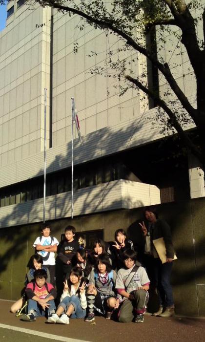東京地方裁判所の見学が終わり、予定通りに恩二小に帰ります。